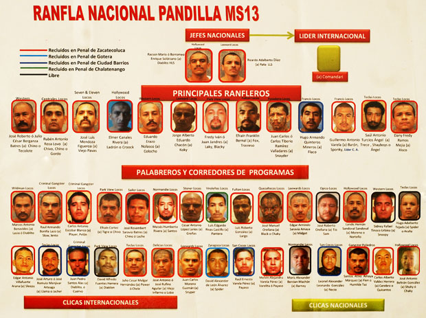 los líderes nacionales de la pandilla. De acuerdo con el organigrama